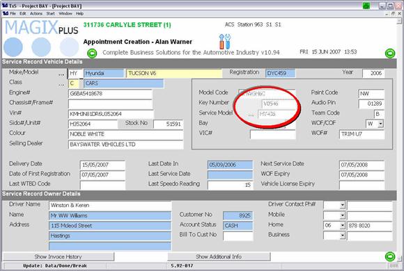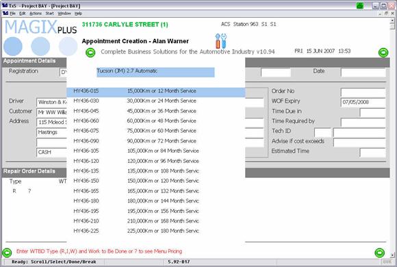 At the Service Record Vehicle details screen when creating an appointment you will see the Service Model'. This is what Magix uses to determine the specific services available for the particular vehicle.