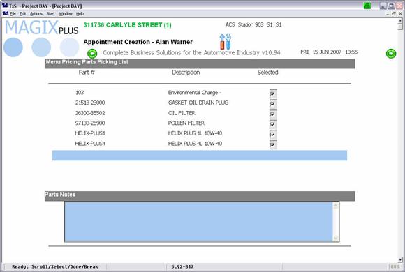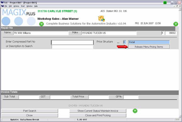 In the parts module a new button appears Release Menu Pricing Items'. Click this to automatically invoice all the parts listed.