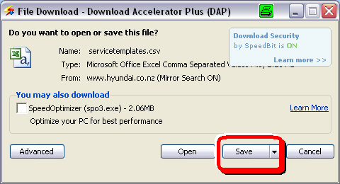 Service-Menu Pricing-Hyundai Menu Pricing-Download HY Menu Pricing Files. Doing this will open up a Window similar to the following, click Save.